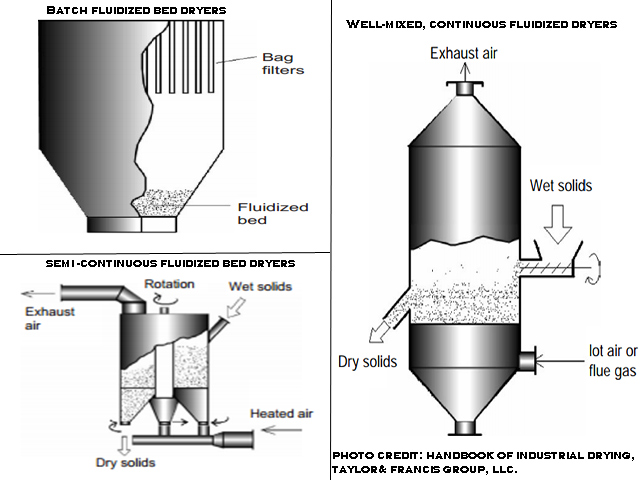 - Well-mixed, continuous fluidized dryers.